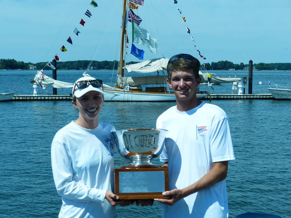 The 2015 Penguin Internationals were hosted by the Tred Avon Yacht Club in Oxford, MD and sailed in conjunction with the William H. Myers Heritage Regatta on August 22nd and 23rd. The principal race officer for the event was the late William H. Myers daughter, Tot O’Mara. 15 Penguins participated in the event, with the predominant battle between eastern and western shore boats, with one out of bay boat, Class Secretary, Mike Hecky, sailing with his daughter Rachel, who hail from New Jersey. Conditions Saturday were near perfect for Penguin sailing, with an 8 – 12 knot breeze, nominally from the northeast, but with shifts, puffs, and holes to keep things interesting, or frustrating depending on which side of the course you were on.