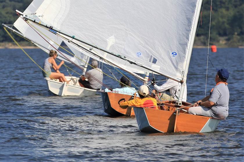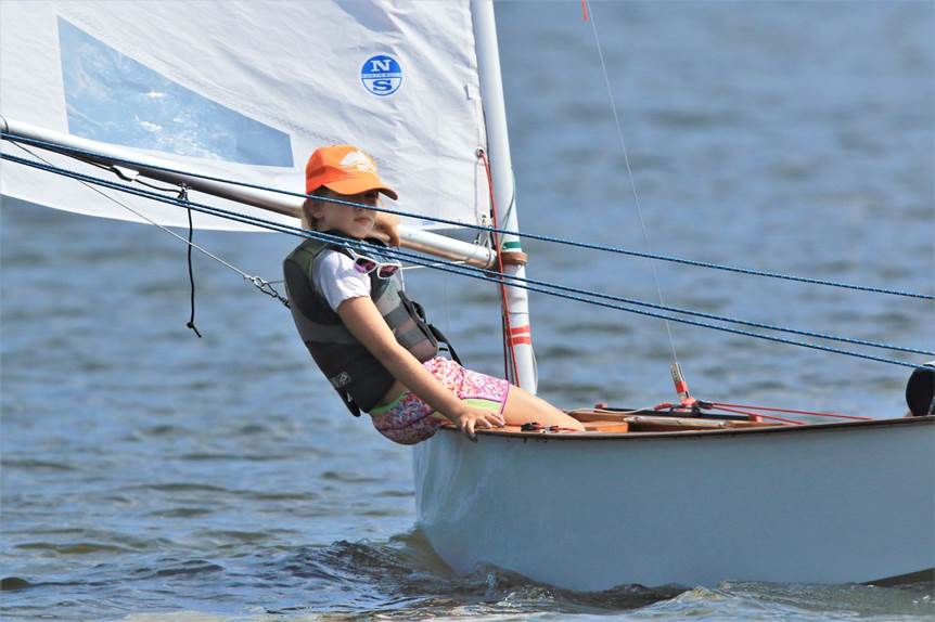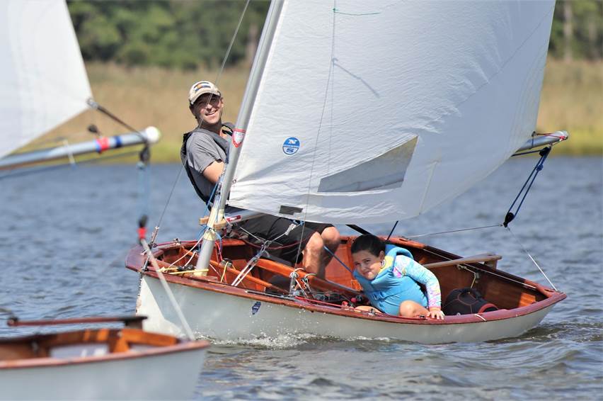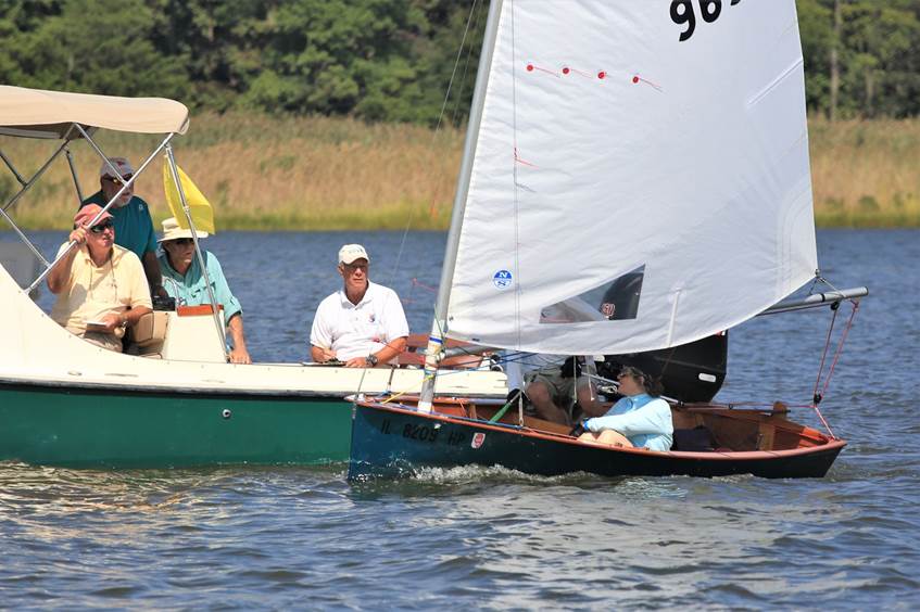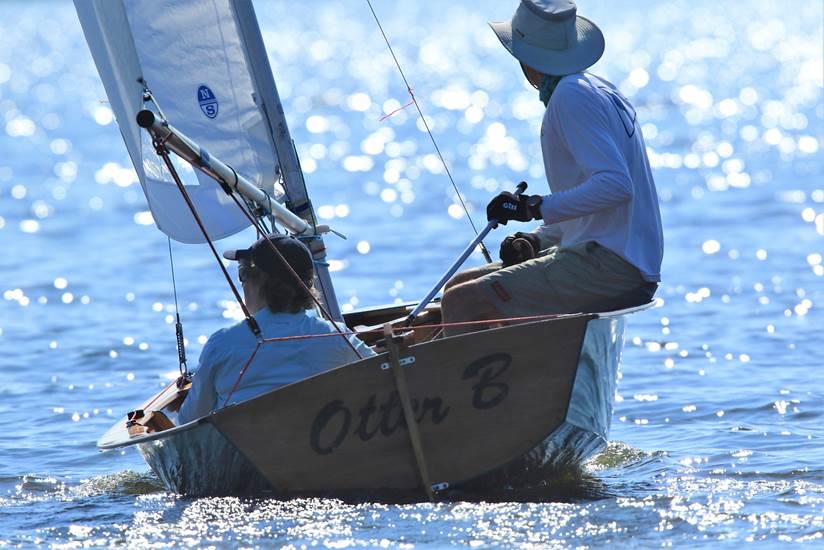 The Lepperts sailing a classic Penguin with a classic Moorhouse sail.