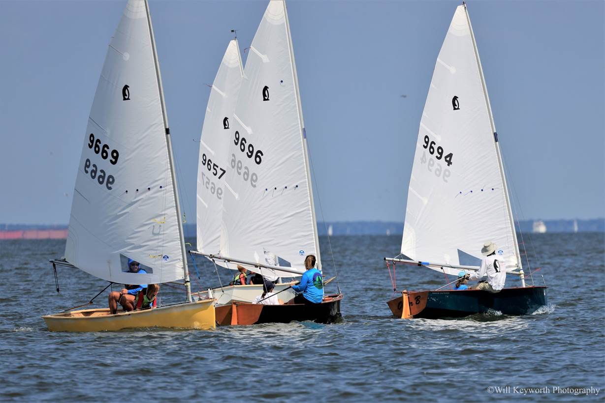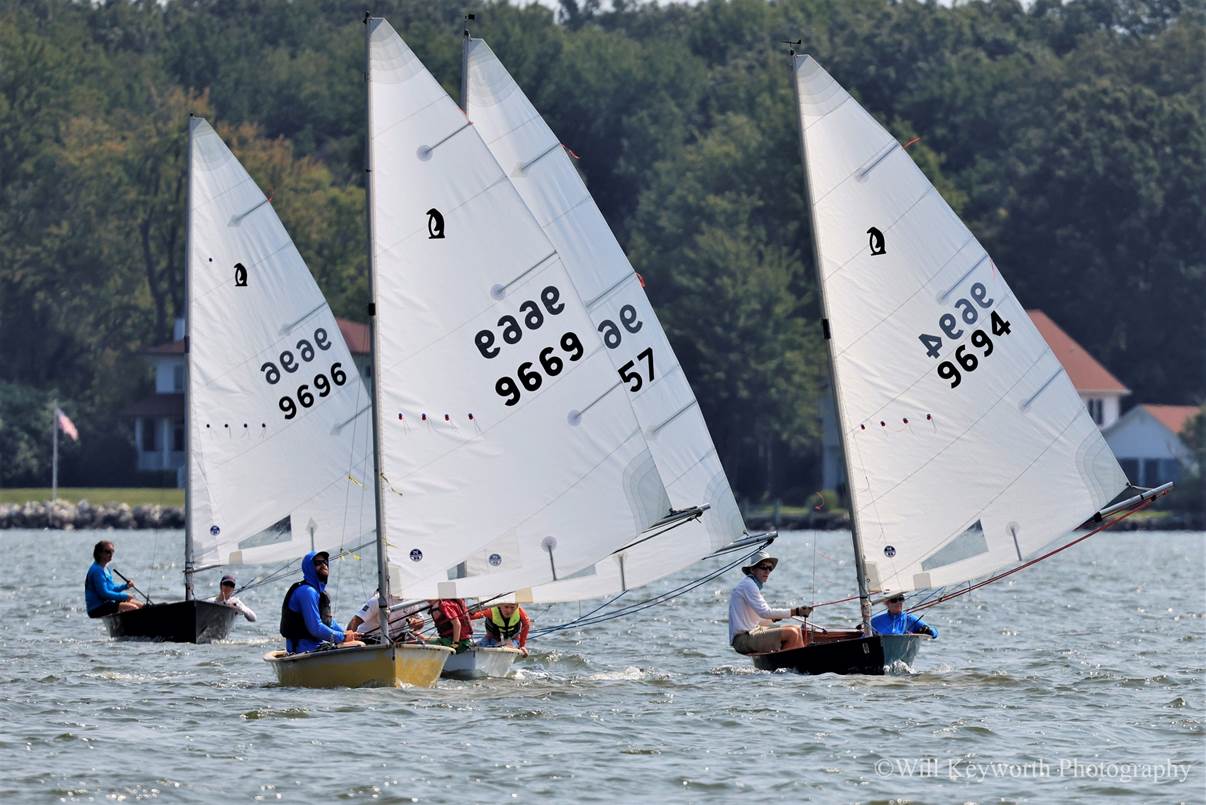 The racing was close on Saturday, as RJ Bay leads towards the leeward mark. Photo by Will Keyworth.