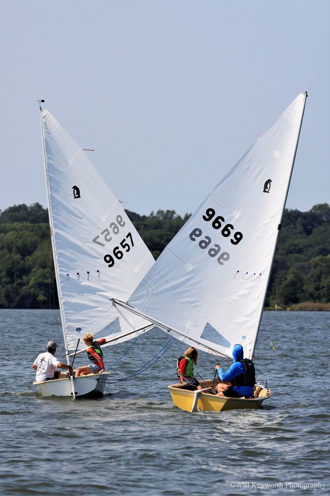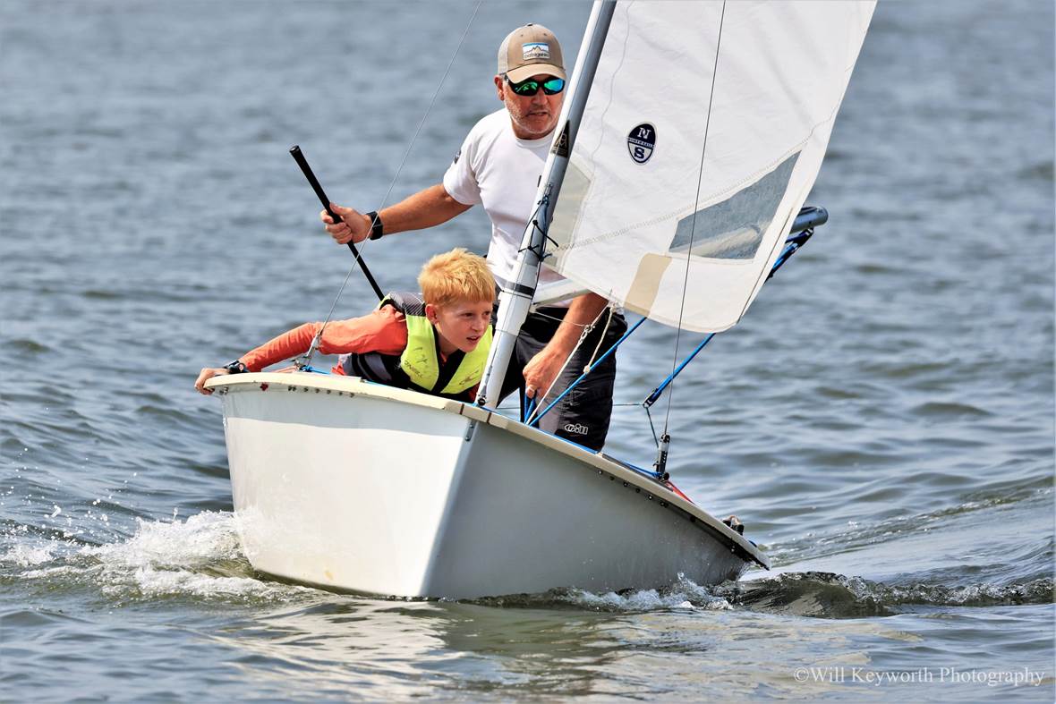 Chris Conway, sailing with 10 yr. old Dorsey Owings, took a 2nd in race 1, and a bullet in race 7 to edge out Charlie and Cairn Krafft for 3rd overall. Devon Feusahrens sailing with Donna McKenzie, received the Faith Israel perpetual for the top female team, and were consistently in the mix in the competitive fleet.