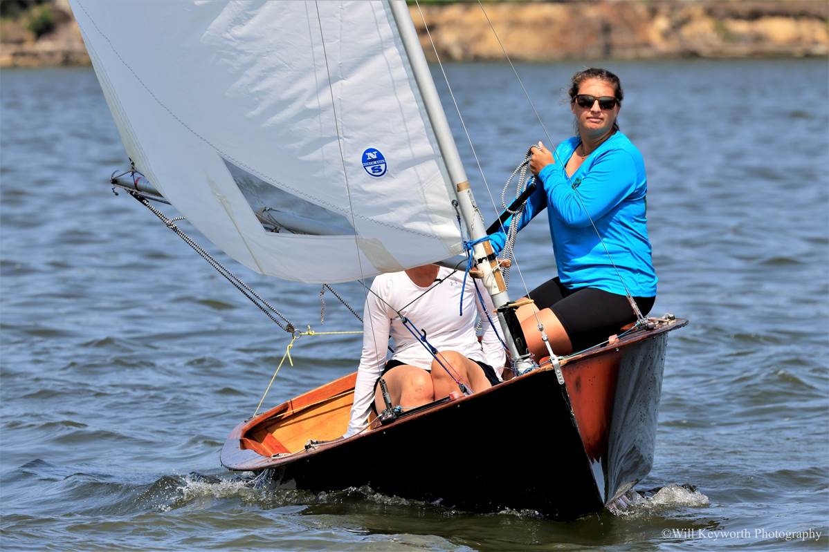 Devon Feusahrens with Donna McKenzie sailing upwind. Photo by Will Keyworth.