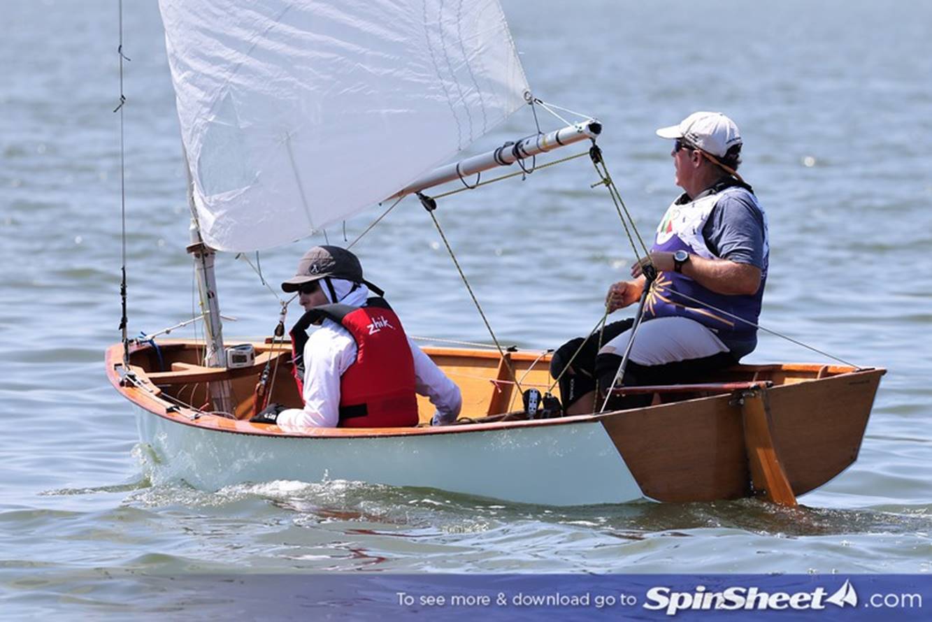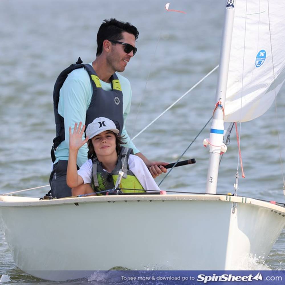 Joe and granddaughter Olivia Brooks enjoying time together sailing a Penguin.