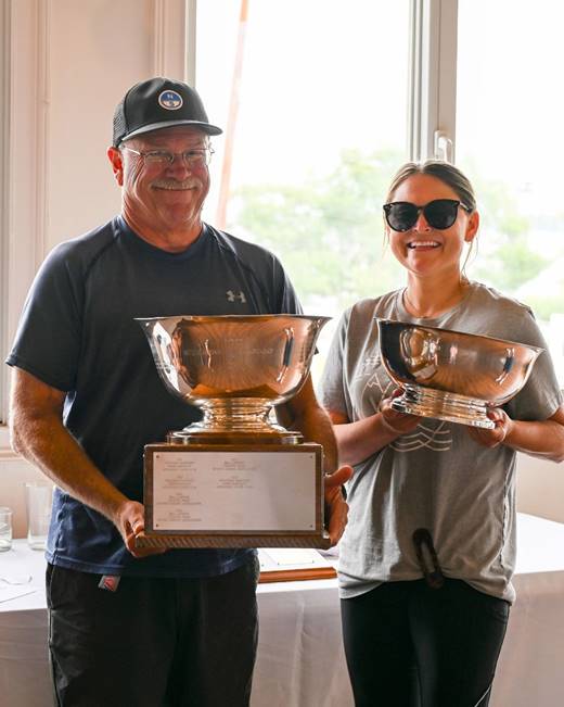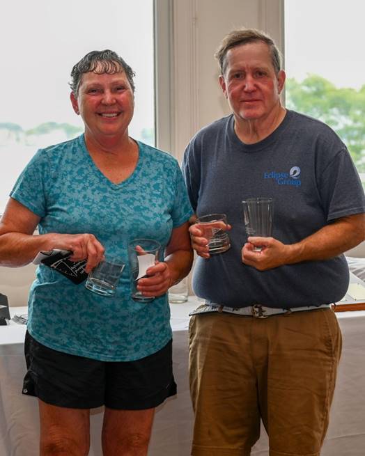 The 2024 Penguin Internationals are in the record books with Jonathan and Annie Bartlett capturing yet another victory, their fifth as a team and sixth for Jonathan. They did it in an impressive fashion, winning 6 of the 9 races sailed, choosing to not sail the last race as they had victory sewn up. Bill Lawson sailing with his wife, Colette Preis, held off Scott and Elliott Leppert in a tiebreaker. Charlie and Cairn Krafft finished fourth, just ahead of regatta organizer and Beachwood Yacht Club commodore Will Wiencke sailing with his son. Sandy McAllister, sailing with Henneage Baugh took 6th. . Martin Krafft, sailing with Anneke Ransijn finished seventh and third in the Classic fleet. Lauren Bednarz-Scott sailing with Sue Bednarz, the only all-female team, finished 8th. Mike Baugh sailing with his son, Roddy, took 9th, with Robert Meelheim and his son Robbie finishing tenth. Joe Maurer with Ana DiBrienza finished 11th, and Keith Christopher and Dawn Smith rounding out the top 12. Bill Parkes and Scott Summerill registered but did not sail.