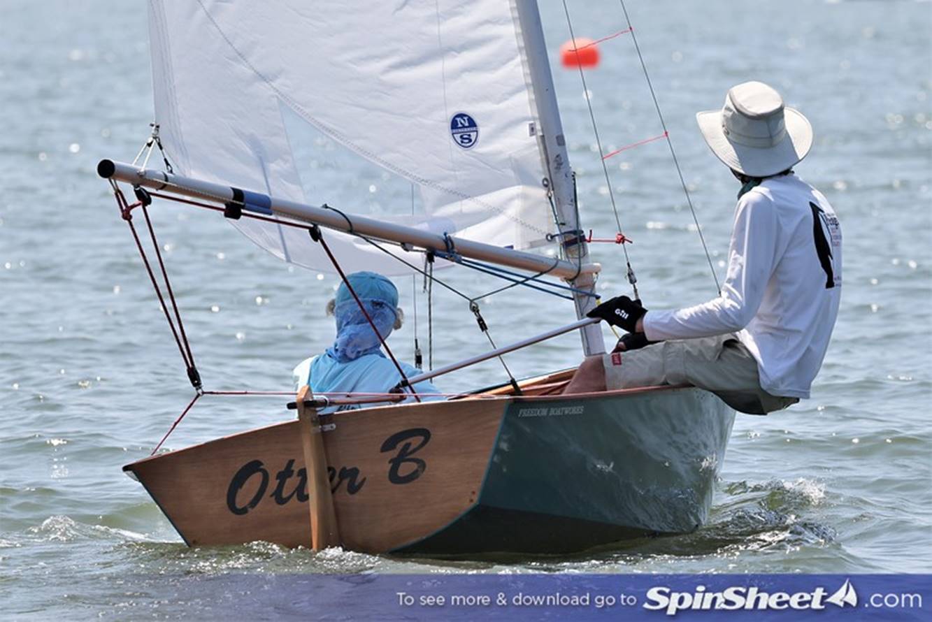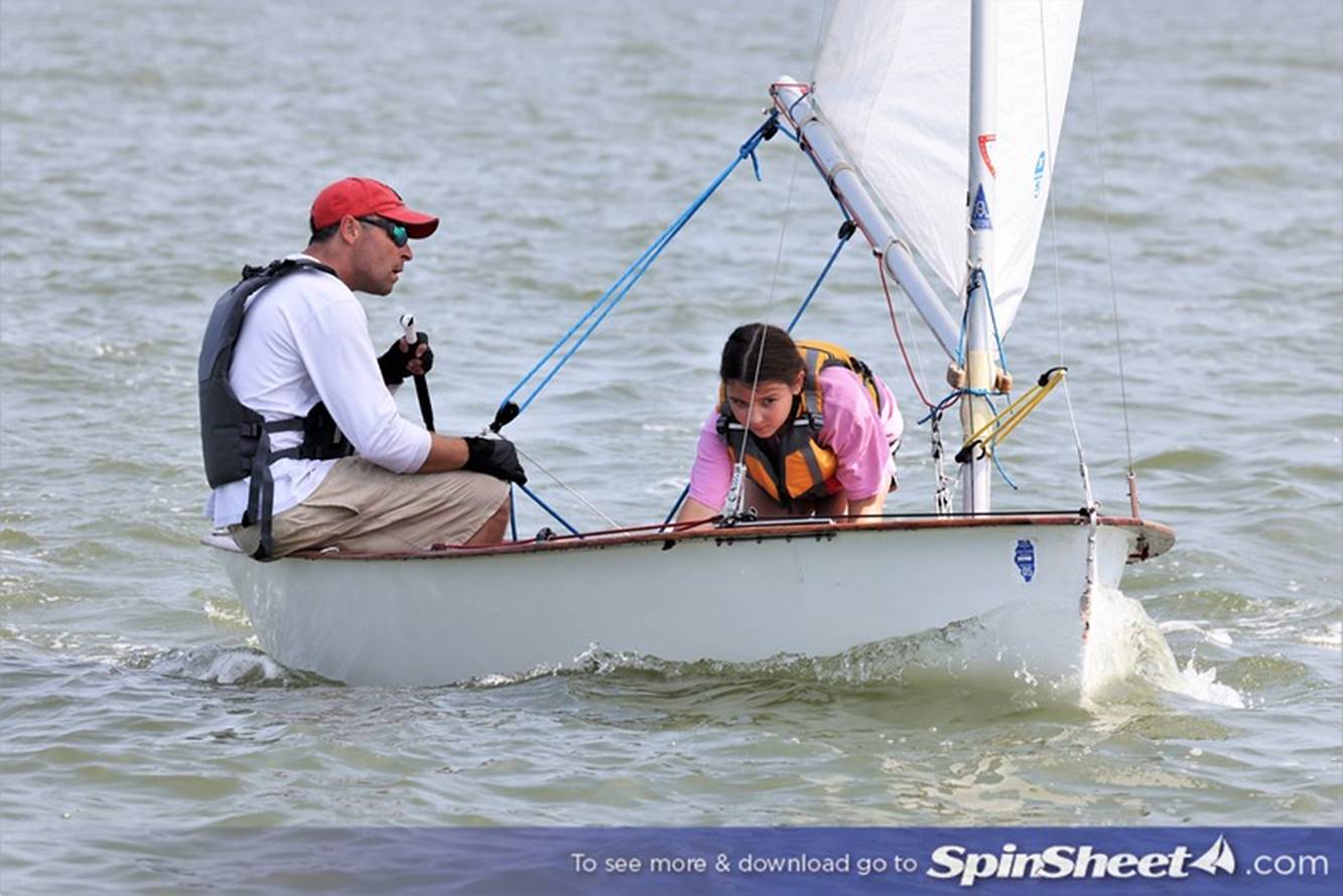 Joe and granddaughter Olivia Brooks enjoying time together sailing a Penguin.